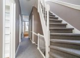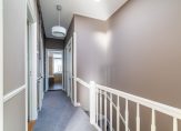 Trap naar 2e etage, overloop, toilet en vaste kast, nieuwe luxe badkamer voorzien van ligbad, douche en wastafelmeubel, 3 slaapkamers, een ruim balkon en een ruime bergkamer met opstelplaats CV-ketel, wasmachine en wasdroger.