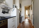 Entree op straatniveau, hal en trap naar 1e verdieping, overloop met toilet, charmante L-vormige woonkamer met vrij uitzicht in de Roggeveenstraat, keuken voorzien van alle apparatuur.