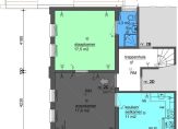 Indeling: Entree/woonkamer van 17.6 m2, woonkeuken van 11 m2 met wasmachine/CV ruimte, slaapkamer van 17.5 m2 met aangrenzende badkamer met douche, toilet en vaste wastafel.