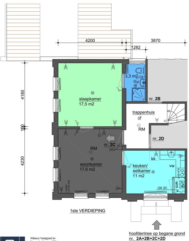 Via de centrale entree en het trappenhuis bereikt u het appartement op de 1e verdieping.