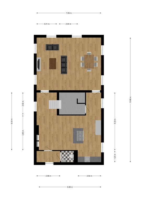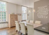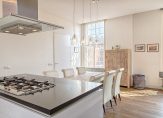 Centrale hal met toegang tot de woning. Tussen hal met toilet en toegang tot de riante woonkeuken met ruimte voor een lekkere grote eettafel en complete keuken met kookeiland voorzien van diverse inbouwapparatuur zoals 2x koelkast, vriezer, magnetron, oven, vaatwasser, gaskookplaat en een afzuigkap. In de woonkeuken bevindt zich ook een ruime voorraadkast. De woonkeuken biedt een mooi uitzicht over het gezellige binnenplein van de kazerne met gezellige horeca en terrasjes. Trapopgang naar de verdieping. Via deuren aan beide kanten van de trapopgang komt u in de ruime, lichte woonkamer aan de kopzijde van de het complex. Met grote ramen aan drie zijden is het uitzicht op onder meer de molen uitzonderlijk.