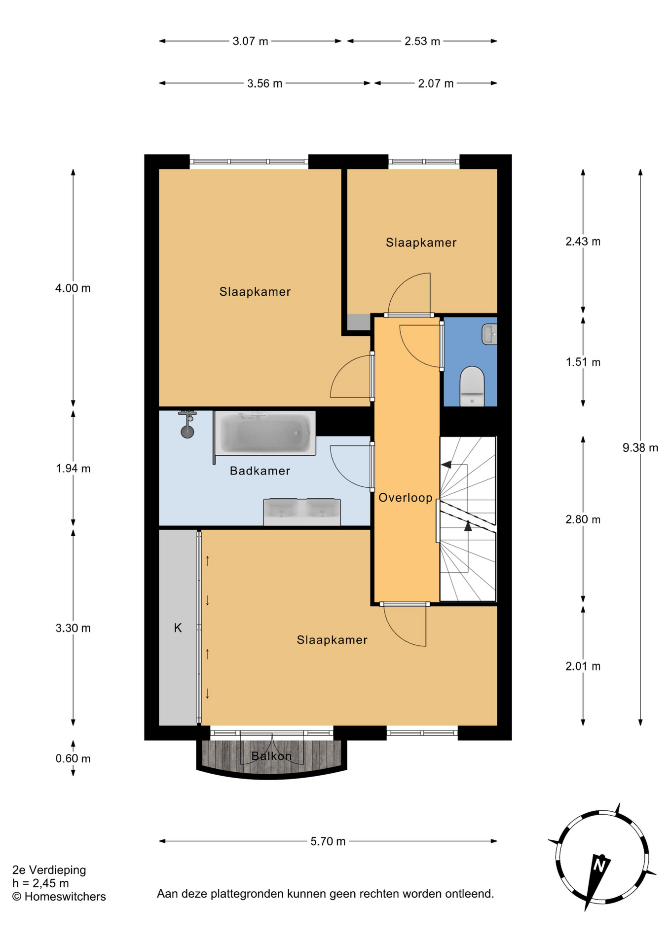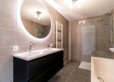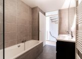 Trap naar de tweede etage, overloop met apart toilet, ruime slaapkamer aan de voorzijde met kastenwand en balkon, 2 slaapkamers aan de achterzijde en tussengelegen nieuwe luxe badkamer voorzien van ligbad, inloopdouche, handdoekradiator en meubel met dubbele wastafel.