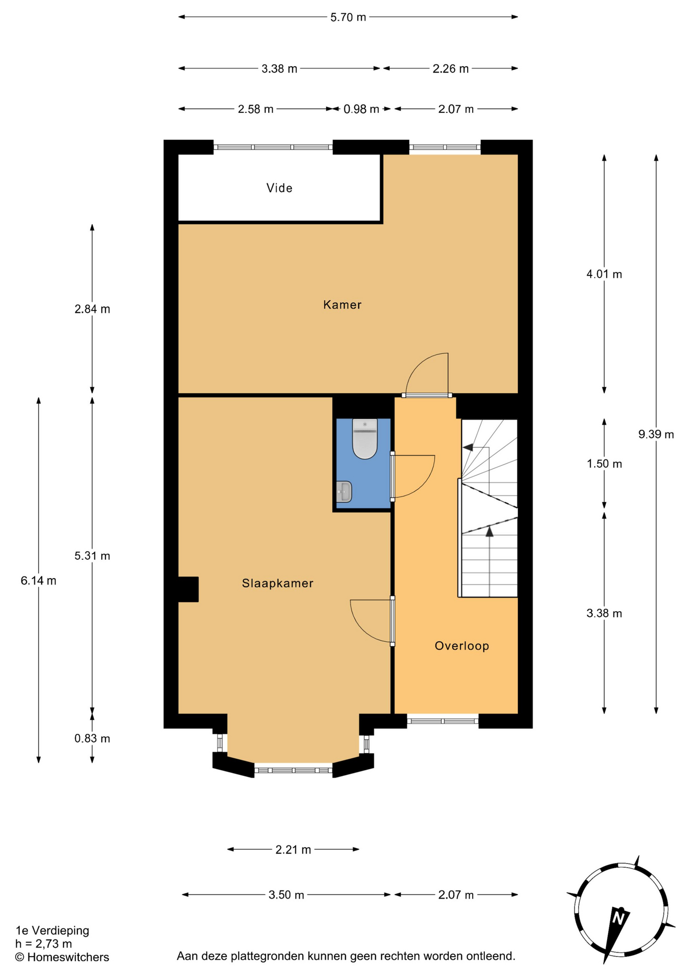 Vanuit de hal de trap naar de eerste etage, ruime overloop, toilet met fonteintje, aan de achterzijde een ruime kamer met vide en een eveneens ruime kamer aan de voorzijde met erker.