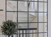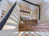 Op de eerste verdieping heb je, net als beneden, niet het idee dat je in een villa bent die pas 20 jaar oud is. Paneeldeuren en het prachtige trappenhuis bepalen de sfeer op de overloop.