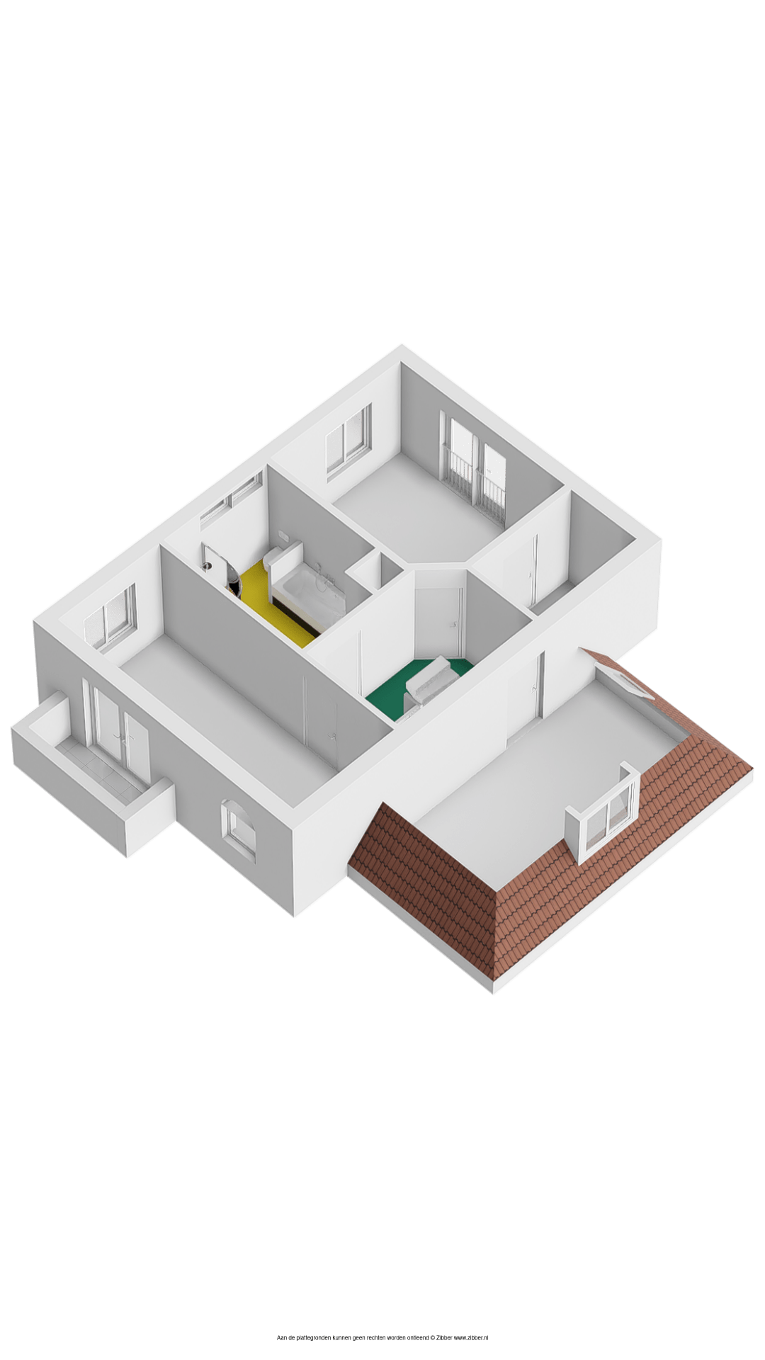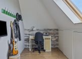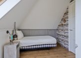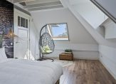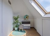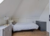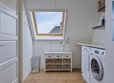 De trap gaat verder naar de tweede verdieping, waar als eerste de overloop annex wasruimte is. Vanaf hier zijn twee slaapkamers te bereiken, waarmee het totaal op vijf komt. Beide slaapkamers hebben een groot dakraam en veel praktische bergruimte in de schuinten van het dak. En ook op deze verdieping geldt; het uitzicht is fraai, vooral aan de achterzijde.
