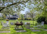 Het tuincafé is een geliefde plek bij de bewoners, net als het terras vlak naast de paardenweide. Hier zorgen bomen voor fijne schaduw, maar zon is er ook volop aanwezig.