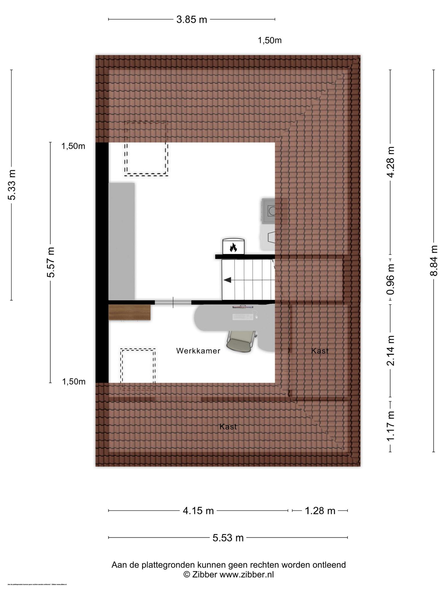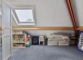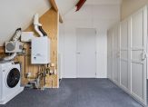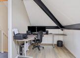 Onder het schuine, geïsoleerde dak zijn nog twee ruimtes. De kamer aan de voorzijde wordt nu als werkplek gebruikt en de tweede, tevens grootste ruimte biedt onder andere ruimte aan het witgoed. Op deze verdieping zijn twee dakramen geplaatst en de werkkamer is pas vorig jaar gerealiseerd.