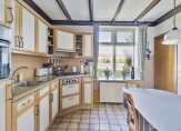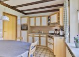 Vanuit de woonkamer en hal is de keuken te bereiken, met ruimte voor een eettafel. Ook als je hier zit, is er uitzicht om in te lijsten. De keukenopstelling in een L-vorm is voorzien van een gaskookplaat, afzuigkap combi-oven en een koelkast. De naastgelegen bijkeuken/wasruimte biedt de kans om een fantastische woonkeuken te realiseren.