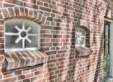 – Houten kozijnen, gedeeltelijk voorzien van dubbel glas;