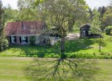 Vanaf de zandweg rij je de oprijlaan op, omringd door prachtige bomen en een weilanden. Aan het einde sla je rechtsaf, richting de woonboerderij en de garage met carport. Nadat je bent uitgestapt, en deze unieke plek hebt bewonderd, loop je naar de voordeur.