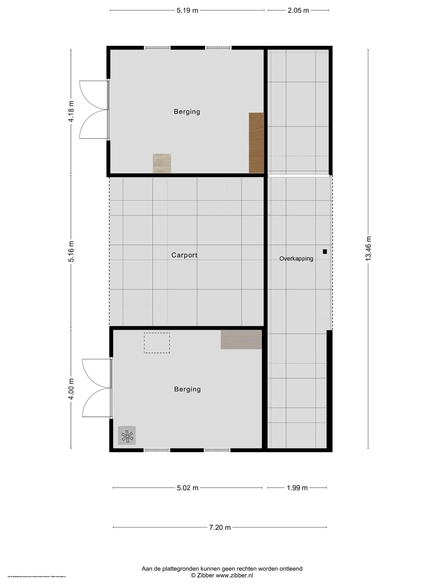 Op het perceel staat een groot, multifunctioneel bijgebouwd van circa 13.50 x 7.20 meter. Op de begane grond zijn twee garages, een carport en een overkapping. Verrassend is de indeling boven, met een vliering en een slaapzolder. Zo is een slaapfeestje thuis altijd feest! Het tweede gebouw is een houten tuinhuis, met een overdekt terras aan de voorzijde.