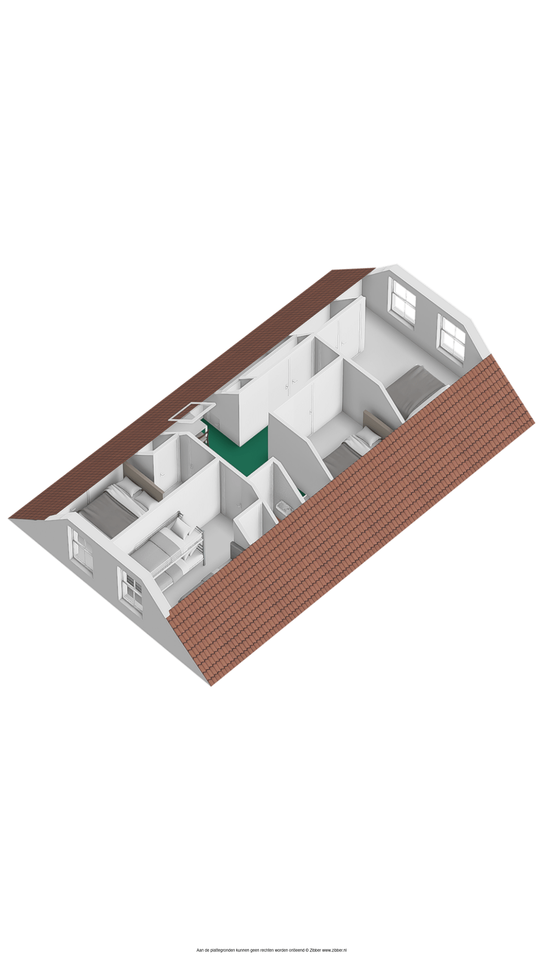 In totaal zijn er vier slaapkamers, waaronder de master bedroom met een diepe inbouwkast. Ook de drie andere slaapkamers hebben een inbouwkast en/of berging in de schuinte van het dak.