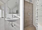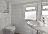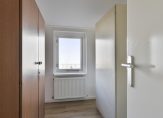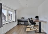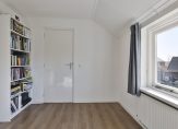 Vanaf de overloop zijn drie slaapkamers en de badkamer te bereiken. De hoofdslaapkamer bevindt zich aan de achterzijde en de slaapkamer aan de voorzijde is in gebruik als werk-/muziekkamer. De derde slaapkamer is als kleed-/wasruimte in gebruik. In 2018 is ook de badkamer vernieuwd, met een fraai eindresultaat. Grote, witte wandtegels zijn gecombineerd met wit sanitair en donkere vloertegels. Je hebt de beschikking over een inloopdouche, toilet en een wastafel met spiegel.