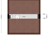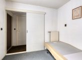 Een portaal verbindt de keuken met de tuin, een slaapkamer en een doucheruimte met wastafel. De slaapkamer is thans ingericht met een eenpersoonsbed en een garderobekast. In het verlengde van de slaapkamer is een berging, te bereiken vanuit de tuin.