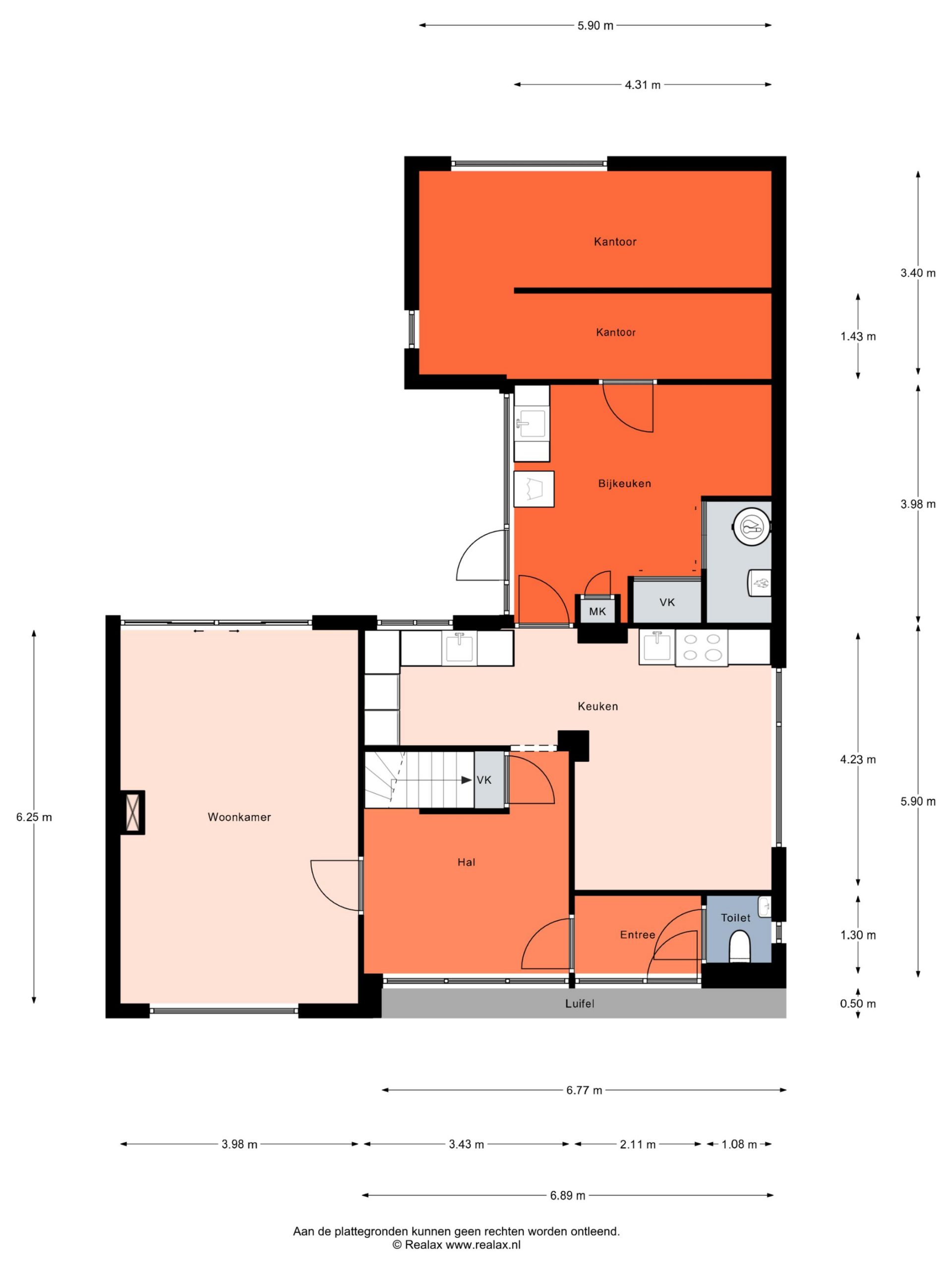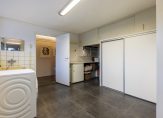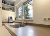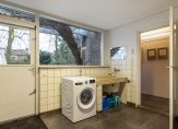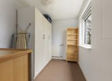 Vanuit de keuken is de bijkeuken te bereiken, met een doorloop naar de kantoorruimte. Naast het klassieke lavet is ruimte voor de wasmachine en verder zijn er meerdere vaste kasten in de bijkeuken. De kantoorruimte bestaat uit twee delen, met een totale oppervlakte van circa 20 m2. Niet alleen voor ondernemers, maar ook voor de thuiswerker en als hobbyruimte is dit een geschikte plek. En is het de wens om gelijkvloers te wonen? Deze ruimte kan worden verbouwd tot slaapkamer en badkamer.