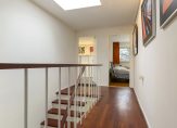 De trapopgang, parketvloer en lichtkoepel zorgen voor een overloop met stijl en klasse. Vanaf hier zijn drie slaapkamers te bereiken, waarvan twee met een wastafel en een kleedruimte. De master bedroom, met inloopkast, is van royaal formaat.