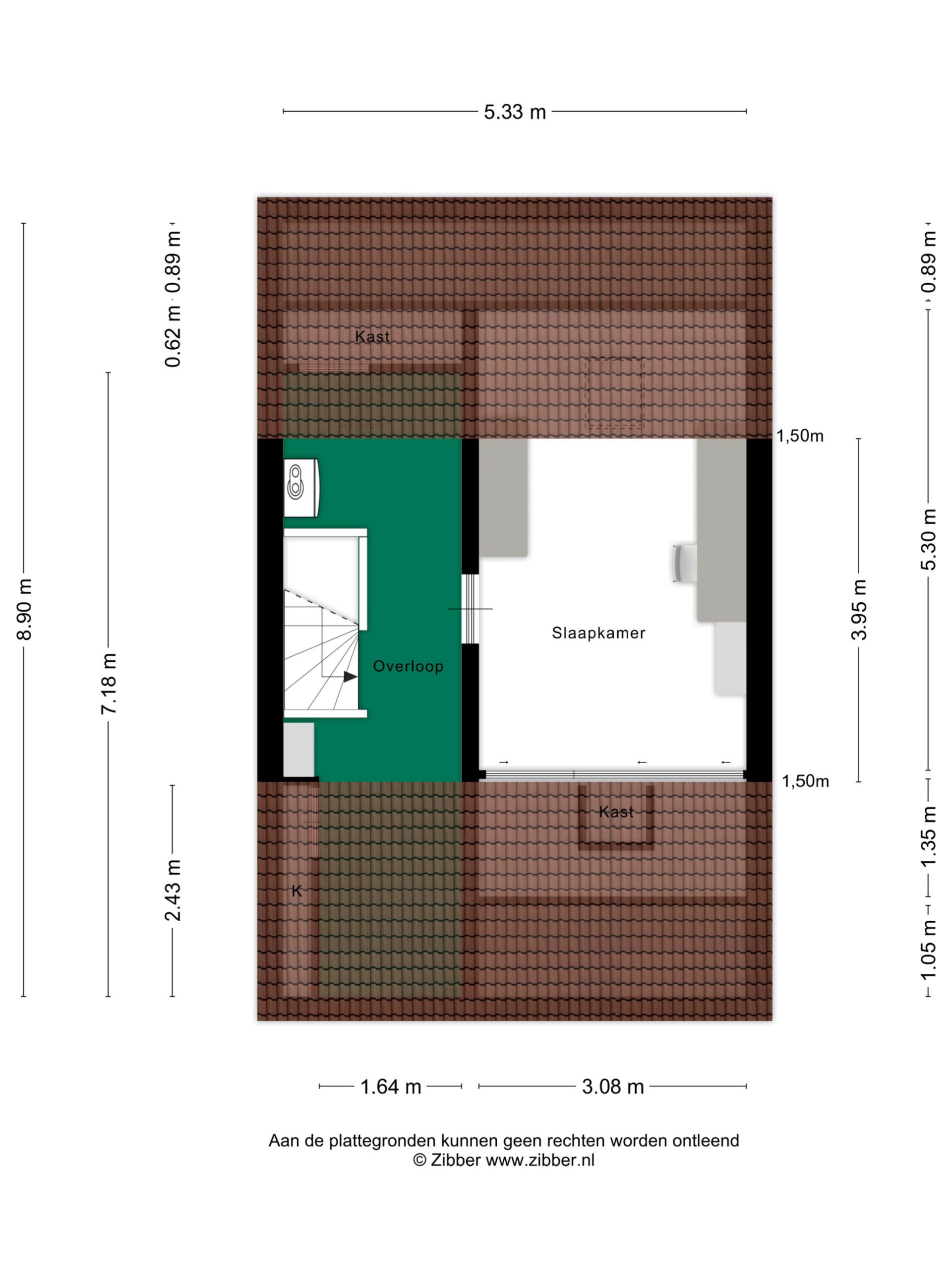 Ook de tweede verdieping verkeert in een goede staat, waardoor je al snel kan beginnen met inrichten. Op de overloop, naast de trap, hangt de HR-ketel en er is bergruimte in de schuinten van het dak.