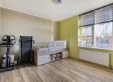 De slaapkamers zijn aan de kant van de Koeweide, een weg zonder doorgaand verkeer. De eerste slaapkamer van circa 11 m2 is in gebruik als kinderkamer en sportruimte. Naast deze kamer is de circa 16 m2 grote master bedroom, met genoeg plek voor een grote garderobekast en een dressoir. Opvallend detail in deze kamer is het behang achter het bed, voor een stoere look.