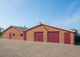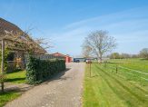 Het linkerdeel van de schuur is ingedeeld met een dubbele hal een lange gang, een berging, toiletruimte, wasruimte, kantoor en een hal van circa 297 m2. Deze grote ruimte, perfect voor een hobbymatige invulling, als caravanstalling of te verbouwen tot stallencomplex, heeft een nokhoogte van circa 3.90 meter.