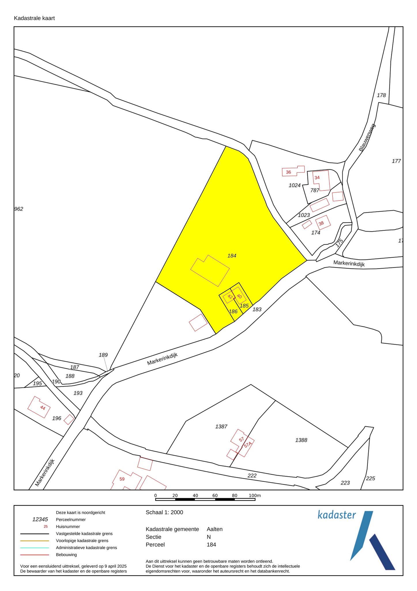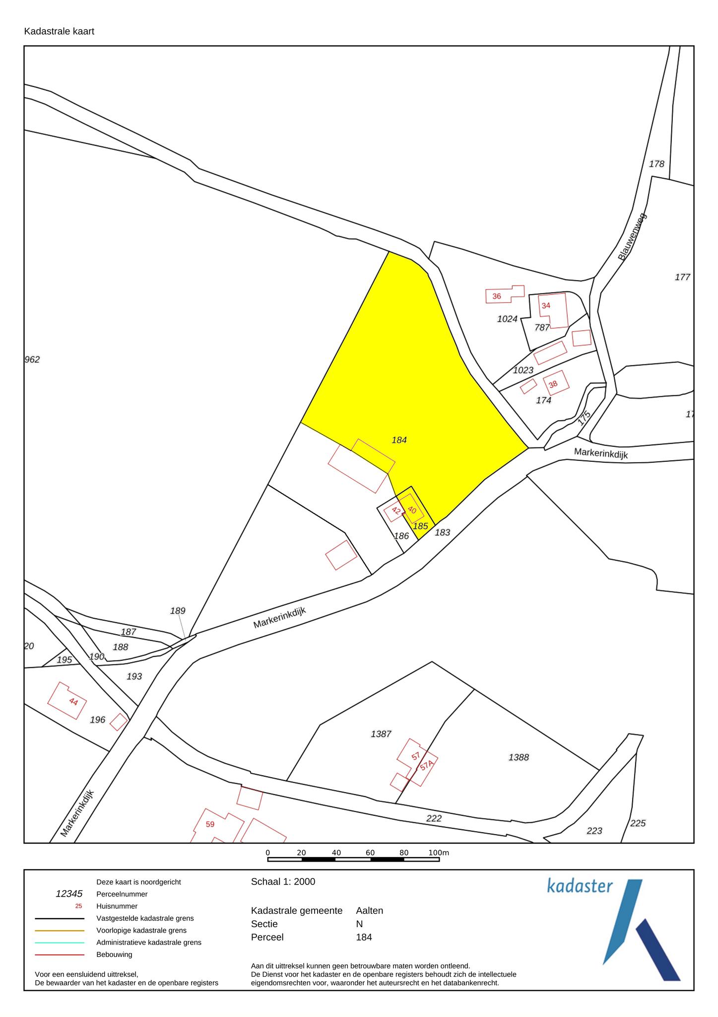 – Kadastrale splitsing van het gezamenlijke perceel (184) betreft een voorstel. Eventuele kadastrale splitsingskosten zijn voor rekening van kopers;