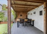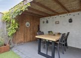 Bij aankomst valt direct de verzorgde voortuin op, met een mooie mix van groenblijvende beplanting die het hele jaar door sfeer geeft. Achter het huis wacht een ware verrassing: een stijlvol overdekt terras dat uitnodigt om heerlijk buiten te zitten, ongeacht het weer. Daarnaast is er een zonnig terras waar je volop van de zon kunt genieten.