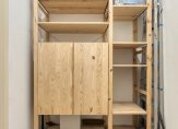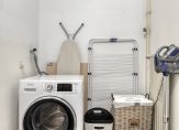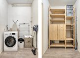 Aan de overzijde van de hal is een inpandige berging, met de wasmachineaansluiting en genoeg plek voor de wasmanden, strijkplank, een kast en een droogrek.