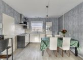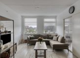 De woonkamer met open keuken heeft een totale oppervlakte van circa 30 m2, met lichtinval vanaf twee kanten. Op de foto’s is goed te zien dat de woonkamer genoeg ruimte biedt om een grote hoekbank, tv-meubel, eettafel en een mooie kast neer te zetten.