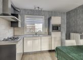 Vlak naast het eetgedeelte is de keuken, waar een hoekopstelling in een mooie kleurencombi staat. De gaskookplaat, afzuigkap, vaatwasser, koelkast en combimagnetron zijn ingebouwd. Vergeet niet om van het uitzicht te genieten, met de voormalige gevangenis uit 1861 als blikvanger.