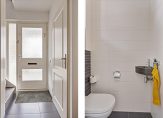 Blikvanger in de achtertuin is de houten veranda, met plek voor een loungeset en een tafel met stoelen. De aangrenzende berging/hobbyruimte heeft een oppervlakte van maar liefst 22 m2; perfect voor de fietsen, als klusruimte en als atelier.
