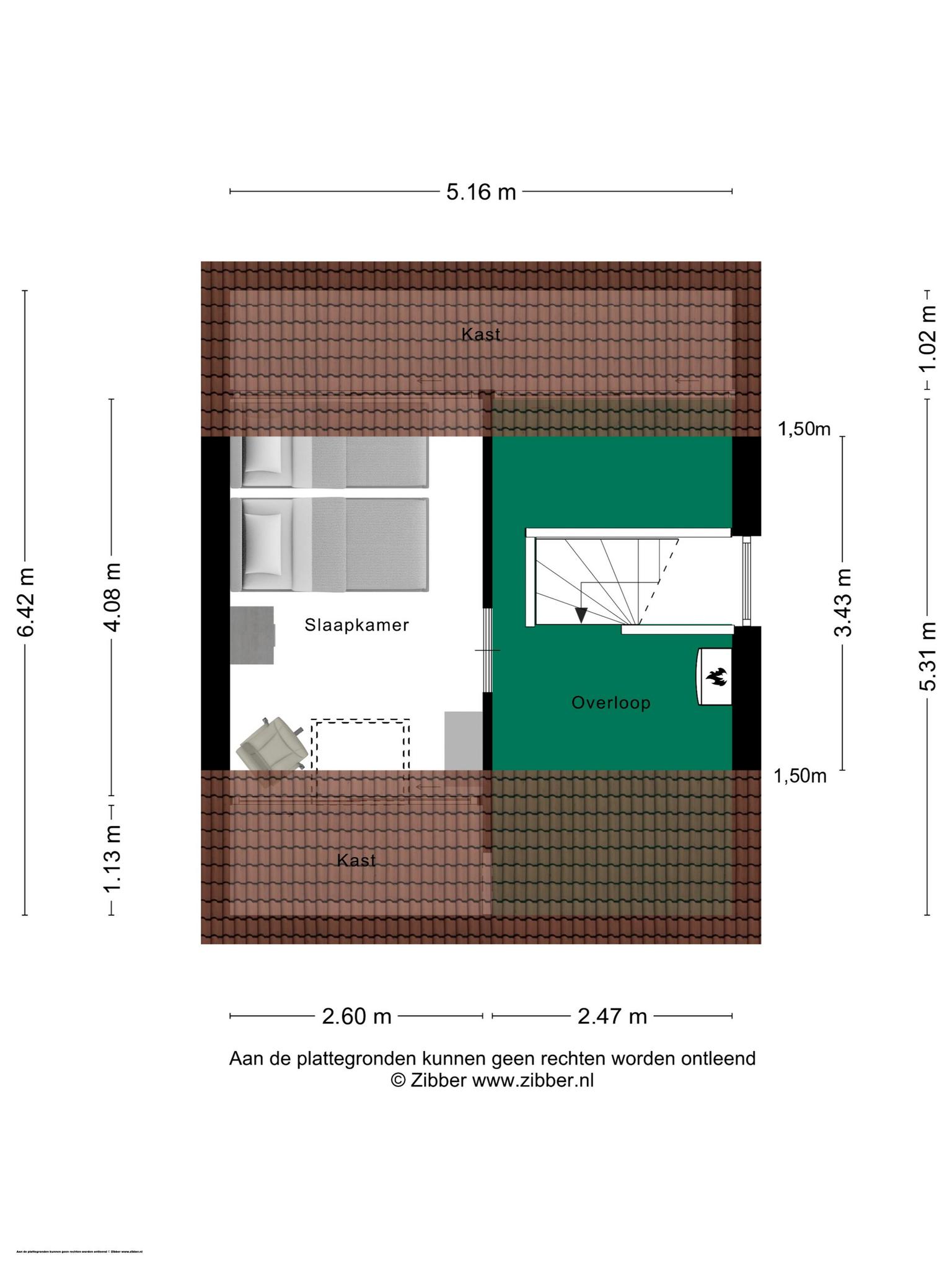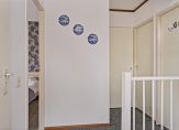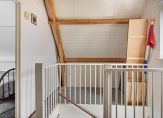 De overloop heeft een raam in de zijgevel, waardoor veel licht naar binnen valt. Verder zie je hier een handige, diepe inbouwkast en de vaste trap naar de tweede verdieping.