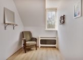 Op deze verdieping zijn de voorzolder en een ruime slaapkamer, met een dakraam aan de achterzijde. In de schuinten van het dak is volop bergruimte en het dak met hoge nok is geïsoleerd. Op de overloop hangt de HR-ketel, die voor verwarming en warm water in huis zorgt.