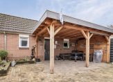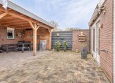 De geheel betegelde voortuin is gesitueerd op het westen en de lange oprit met carport biedt parkeergelegenheid voor twee auto’s. Via de eetkeuken en bijkeuken is de bestrate achtertuin op het oosten te bereiken. Groene vingers zijn niet nodig en er is genoeg ruimte om kinderen buiten te laten spelen.