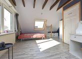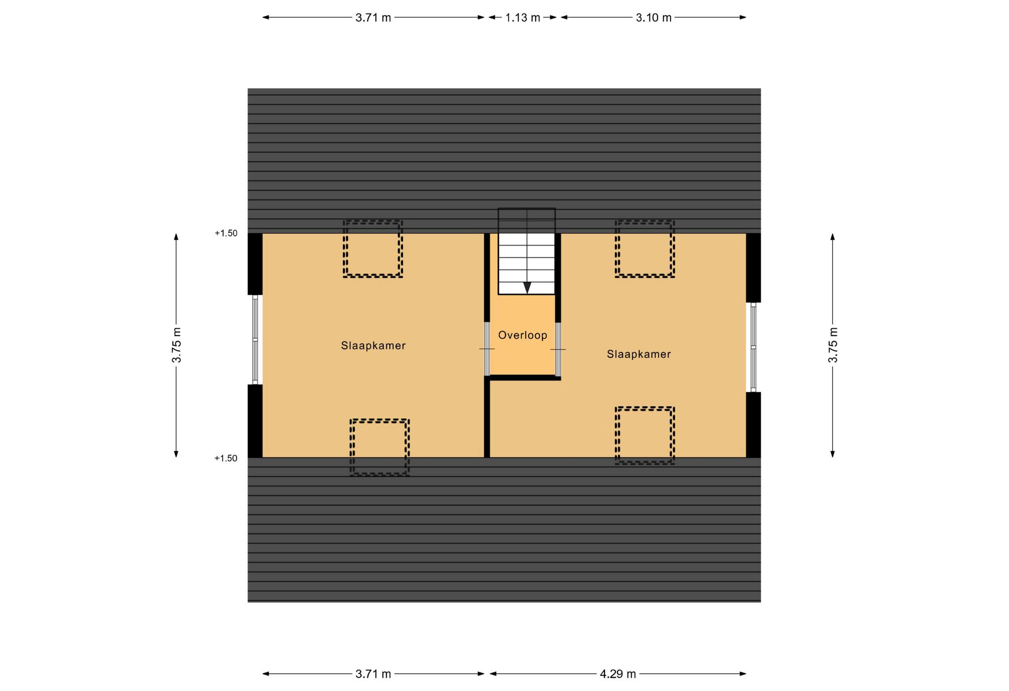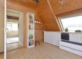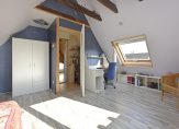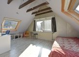 Via een vaste trap kom je op de overloop, die toegang biedt tot twee ruime slaapkamers. Beide kamers zijn voorzien van zijramen en Velux-dakramen zowel aan de voorkant als de achterkant, waardoor er veel licht binnenkomt. De kamer aan de rechterkant heeft bovendien een extra kleine bergvide.