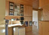Vanuit de slaapkamer loop je naar een tussenportaal, dat nu gebruikt wordt als kantoor. Hier vind je een derde toilet, een aanrechtje en toegang tot nog een kamer aan de achterzijde, inclusief een bergvliering. Het tussenportaal kan bij de kamer aan de achterzijde getrokken worden. Deze kamer kun je helemaal naar wens inrichten: een praktijk aan huis, een logeerkamer of zelfs een B&B-kamer zijn maar enkele van de mogelijkheden. Deze ruimte heeft een eigen ingang en openslaande deuren naar de achtertuin.