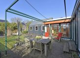 In de achtertuin zijn drie terrassen en een klein vlonder-terras. Het terras dat aan de woonkamer grenst heeft uitschuifbare zonnewering, evenals het vlonderterras dat aan de achterste tuinkamer grenst. De zonneweringen zijn waterdicht zodat je ook in de regen met een lekkere temperatuur buiten kan zitten. Verder is er achterin de tuin nog een lounge plek en een terras naast de schuur. Op de vlonder kan het langst beschut in zon gezeten worden. In de voortuin is een beschut terrasje om te genieten van de ochtendzon.
