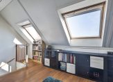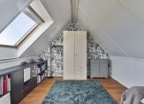 Ruime verdieping met vierde slaapkamer. Deze verdieping heeft 2 dakvensters aan de achterzijde met eveneens het fraaie uitzicht over de polder. Op deze verdieping eveneens de C.V.-ketel en extra bergruimte achter de schotten aan één zijde.