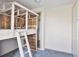 Op de begane grond is verder een extra (slaap)kamer aanwezig, die ook zeer geschikt is als werkkamer of hobbyruimte. De badkamer is eenvoudig maar functioneel ingericht met een douche en wastafel. Op de verdieping bevinden zich maar liefst vier slaapkamers, waarvan 2 voorzien van een vaste kast.