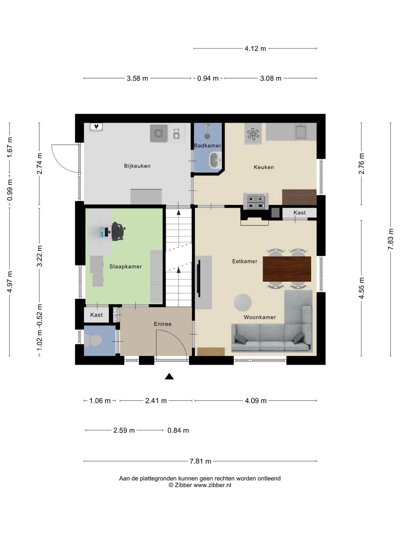 Vanuit de hal loop je door naar de woonkamer, waar je dankzij de raampartijen geniet van een prettige lichtinval. In de woonkamer bevindt zich een vaste kast, handig voor extra bergruimte. Aansluitend bevindt zich de keuken en de ruime bijkeuken met wasmachineaansluiting en tuindeur naar de achtertuin. Vanuit de bijkeuken is de provisiekelder bereikbaar: ideaal voor voorraadopslag of als wijnkelder.