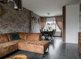De sfeervolle en tuingerichte living is voorzien van een plavuizen vloer en heeft een royale oppervlakte van circa 26 m². Dankzij de grote raampartijen geniet de ruimte van een prettige, natuurlijke lichtinval, wat zorgt voor een aangename en open sfeer.
