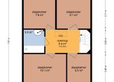 Overloop, vier slaapkamers en de badkamer.
