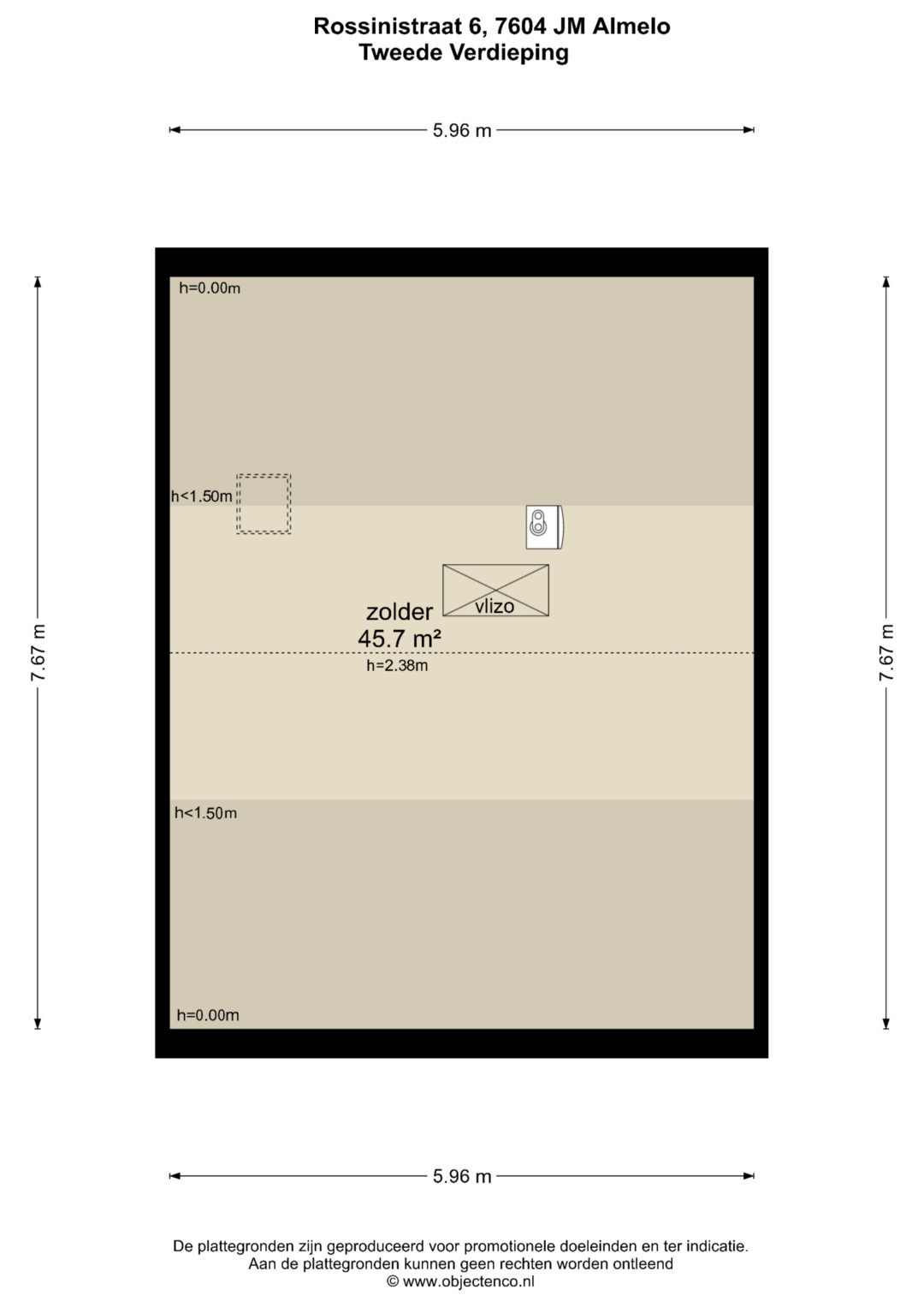 Zolderverdieping, bereikbaar via een vlizotrap. Hier bevindt zich tevens de opstelplaats van de cv-ketel.