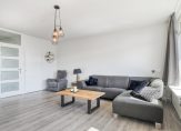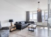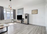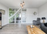 De woonkamer is aan de andere zijde van de woning gelegen en wederom mooi licht door de grote raampartij. Vanaf hier kunt u een balkon op het oosten betreden.