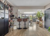 Via de hal stapt u de woonkamer in. Direct het gevoel van ruimte, licht en een fraaie afwerking krijgen we hier door de grote raampartij aan de voorzijde en de uitbouw aan de achterzijde. De zithoek is aan de voorzijde gelegen. U kijkt hier mooi weg over het groen en het water. Vanwege de grote raampartij is de woning heerlijk licht. De woonkamer is in 2023 nog afgewerkt met een fraaie laminaatvloer en neutraal afgewerkte wanden.