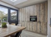 De keuken is gelegen aan de achterzijde. Deze royale woonkeuken is van top formaat door de uitbouw. De keuken is in 2023 geplaatst in een royale L-vormige opstelling in combinatie met een kastenwand aan de andere zijde van de keuken. De keuken is afgewerkt met moderne houten fronten, een fraai werkblad, gestuukte wanden en ziet er op en top uit! De inbouwapparatuur is van het merk Siemens met uitzondering van het grote SMEG fornuis. De keuken is overcompleet met de volgende inbouwapparatuur: