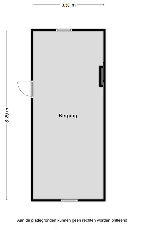 – Afmetingen van de berging; 8,29 m diep bij 3,50 m breed