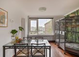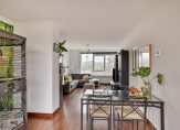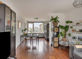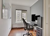 De ruime ‘doorzon’ woonkamer is bijzonder licht door de grote ramen aan de voor-, achter- en zijkant van de woning. Vanuit de woonkamer heeft u een levendig uitzicht over de Prins Bernhardlaan terwijl het geluid buiten blijft vanwege de suskasten en isolerende beglazing.