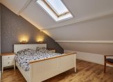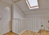 De slaapkamer is heerlijk ruim en voorzien van een nette laminaatvloer en keurige wanden. De slaapkamer is bovendien voorzien van een groot dakraam.