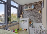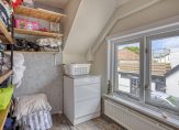Boven aangekomen geeft de overloop u toegang tot vier slaapkamers. Twee slaapkamers aan de voorzijde, de grootste slaapkamer aan de achterzijde en nog een kamer aan de zijkant. Vanwege de hoekligging hebben alle slaapkamers voldoende lichtinval. Alle vier de slaapkamers zijn van mooi formaat en drie slaapkamers zijn voorzien van een laminaatvloer. Eén van de slaapkamers is voorzien van tapijt op de vloeren.