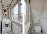 Het toilet boven is naast toilet ook de wasruimte om de wasmachine te plaatsen. Ideaal omdat je gemakkelijk de was kunt laten drogen op het dakterras. De ligging op het zuiden maakt dat dit een fijne plek is om van de zon te genieten.