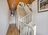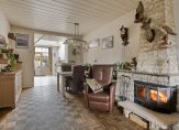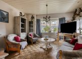 Via de voortuin en zijtuin bereiken we de entree aan de zijkant van de woning. De hal biedt toegang tot de meterkast, woonkamer en trapopgang naar de eerste verdieping. Een mooie royale living door de woonkamer aan de voorzijde en de uitbouw aan de achterkant. Er is een haard aanwezig om de koudere maanden van het jaar de woning sfeervol te verwarmen. Uiteraard is er ook een C.V.-systeem met radiatoren.